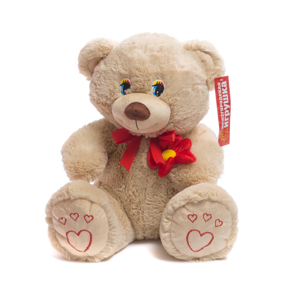 См-247-ц-5_БЕЖ Медведь Нижегородский средний с цветком (Бежевый)